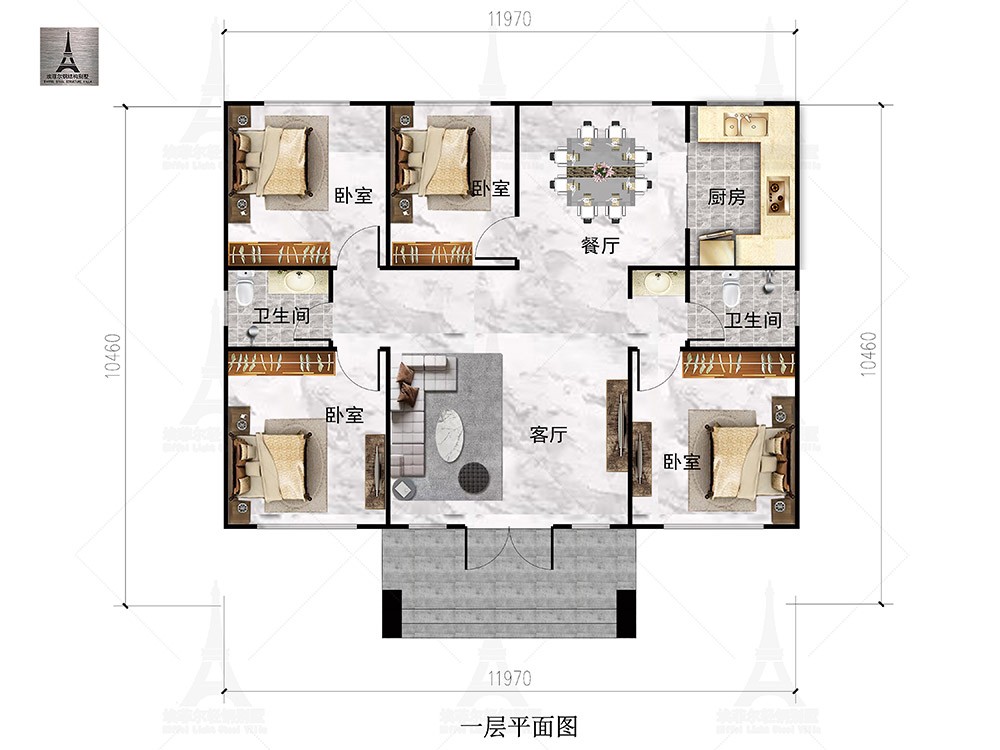鄂尔多斯准格尔旗马宅:总面积129.66平米 12.23X9.13