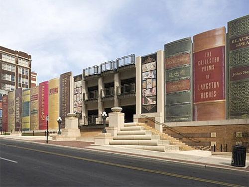 堪萨斯市公共图书馆(Kansas City Public Library)位于美国密苏里州堪萨斯城,于1873年建成,但是它引人注目的原因并不是馆中藏书丰富,而是停车场的独特造型——“书架”。“书架”上“摆放”着22本古典文学图书,包括《指环王》《二十二条军规》《夏洛特的网》等,全都是堪萨斯城居民推荐的图书,其中书脊高7.6m,宽2.7m,立于墙面,两本“书”之间用金属楼梯井连接,模仿“书挡”,整个建筑犹如巨大的书架,体现了堪萨斯城居民对图书的热爱,因此被誉为“美国最酷的图书馆”。