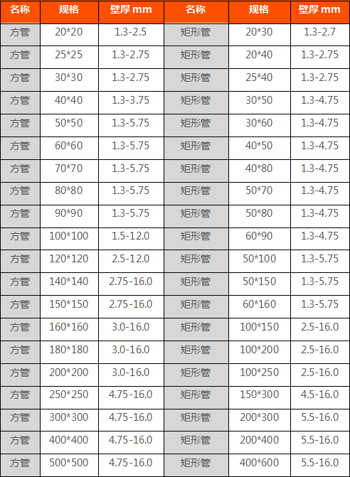 方管顾名思义,它是种方形体的管型,很多种材质的物质都可以形成方管体,它介质于,干什么用,用在什么地方,大多数方管以钢管为多数,经过拆包,平整,卷曲,焊接形成圆管,再由圆管轧制成方形管然后剪切成需要的长度。一般是50根每包方管在现货方面以大规格居多在10*10*0.8-1.5~~500*500*10-25,方管按用途分为结构方管,装饰方管,建筑方管,机械方管等。