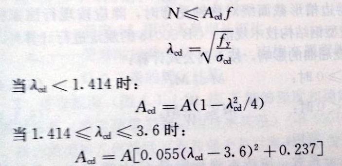 Ae——有效截面面积,对于受压板件宽厚比大于60的板件,应采用公式bes=be-0.1t(b/t-60)对板件有效宽度进行折减;
