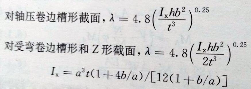 (2)构件长度小于构件畸变屈曲半波长(λ);畸变屈曲半波长可按下列公式计算: