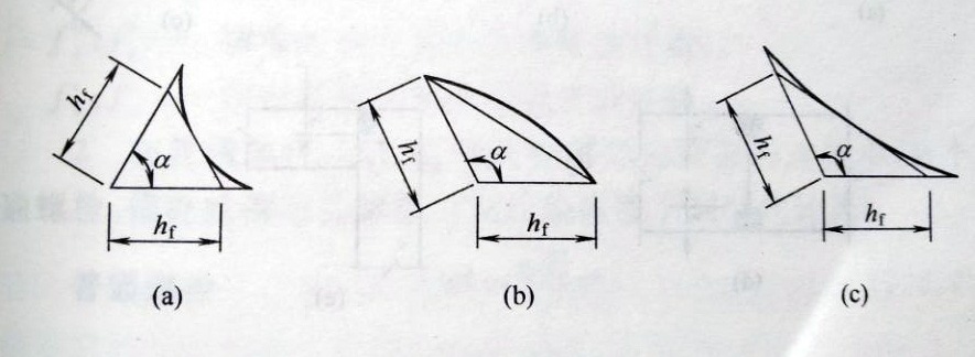 五、部分焊透的对接焊缝(图3a、b、c、d、e)和T形对接与角接组合焊缝(图3c)的强度,应按角焊缝的计算公式3至公式5计算,在垂直于焊缝长度方向的压力作用下,取βf=1.22,其他受力情况取βf=1.0,其计算厚度应采用: