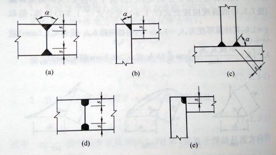 S为坡口深度,即根部至焊缝表面(不考虑余高)的最短距离(mm);α为V形、单边V形或K形坡口角度。
