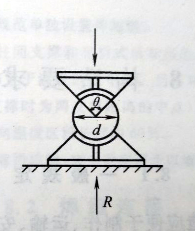 3、铰轴式支座的圆柱形枢轴(图2),当两相同半径的圆柱形弧面自由接触的中心角θ≥90°时,其承压应力应按下式计算:
