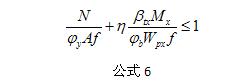 Φy、Φb、η和βtx应按5.2.2条计算弯矩作用平面外稳定的有关规定采用。