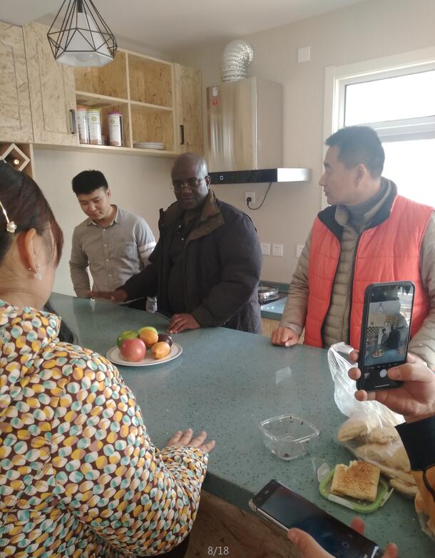 的样板间,轻钢别墅外表美观,内部结构环保,设计新颖、高性价比等优点吸引了这位外国友人。