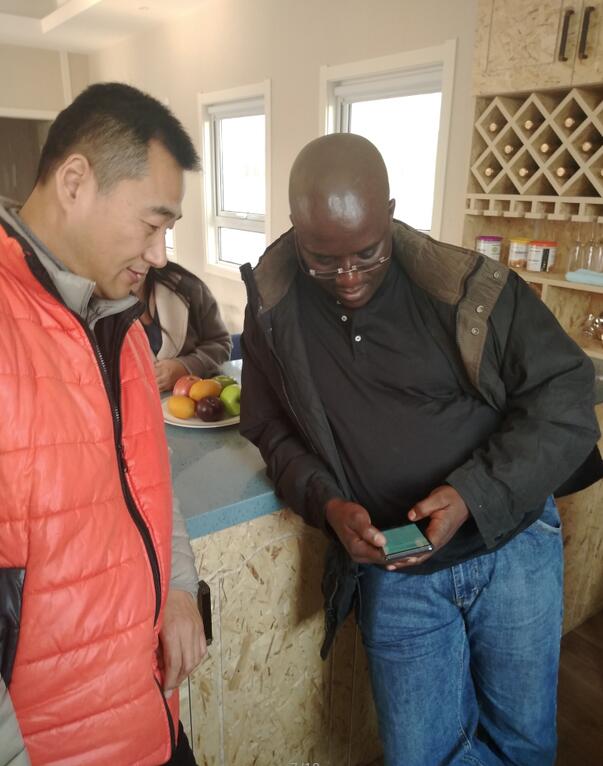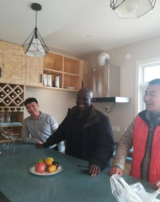 走进别墅,坐在吧台前,外国友人与设计部人员沟通了轻钢别墅的相关事宜。 对轻钢别墅的环境,结构设计、外观等都非常赞赏。并期望埃菲尔轻钢别墅能推广到国外去。埃菲尔工作人员向外国友人表示感谢:好的产品,定能走向世界。