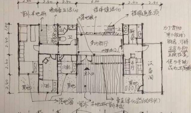 有了空地之后,大叔马上就开始了准备工作,比如这个是他绘制的草图,虽然粗看有些潦草吧,但是琢磨一下,还是粗中有细的,各个区间规划的非常完善,让人一目了然。