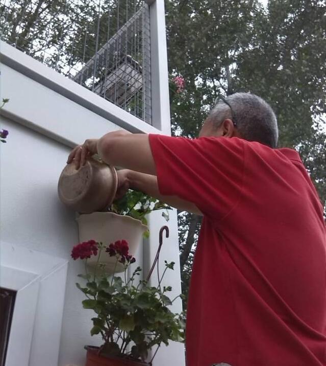 这个花园中,大叔搞得灌溉系统,细细的水花喷涌出来,就好像炊烟袅袅的有雾,让人有种错觉,仿佛来到了人间仙境。