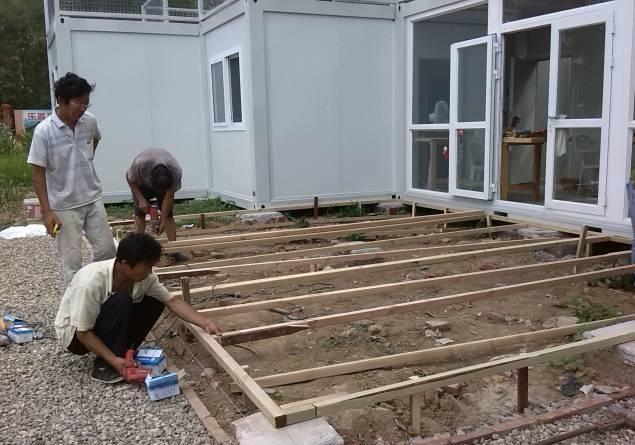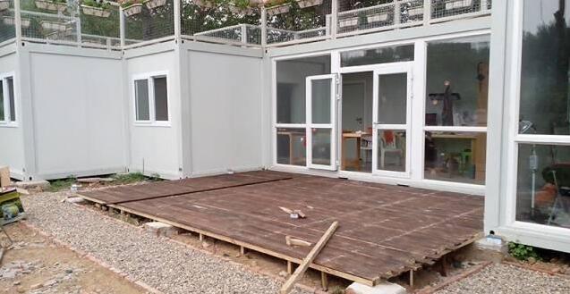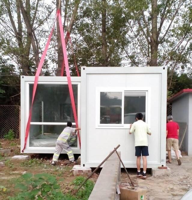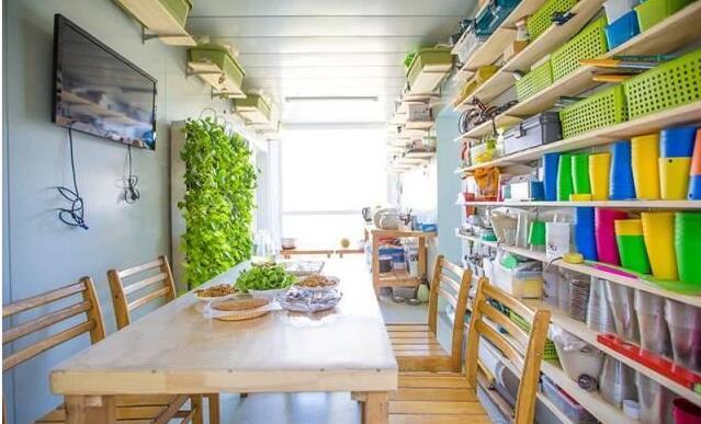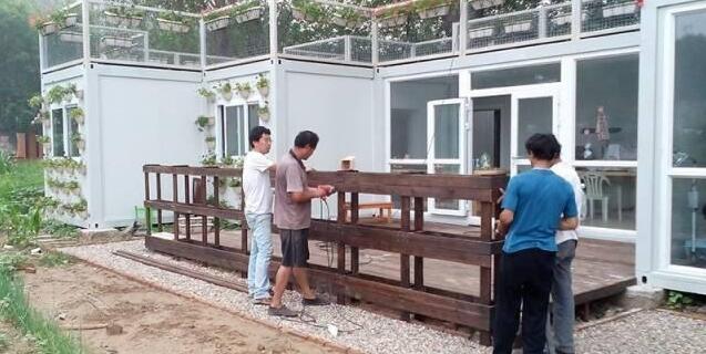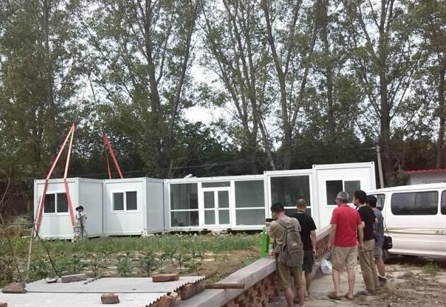 这个是吊机运来的集装箱,一共有6个,每个约15平的样子,六个相加,大概就是一套九十平的房子。当然,这些都是没有包括庭院的大小,如果相加,差不多有两百平,也算得上是一套豪宅了。至于成本,每个集装箱的价格大约在一万左右。