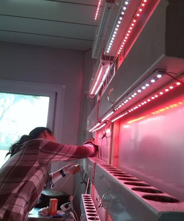 来到厨房,这里做了一个水管蔬菜培育槽,效果还不错。