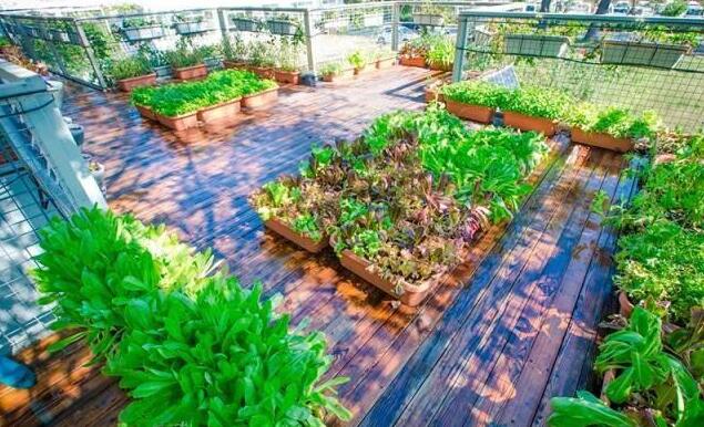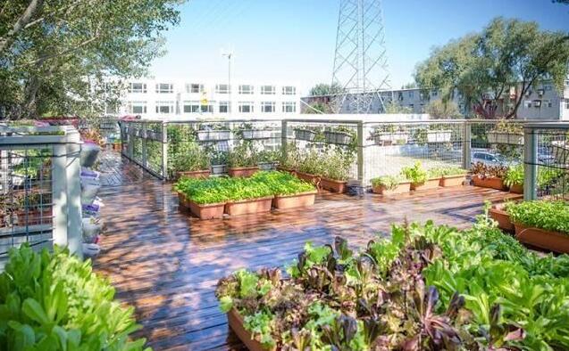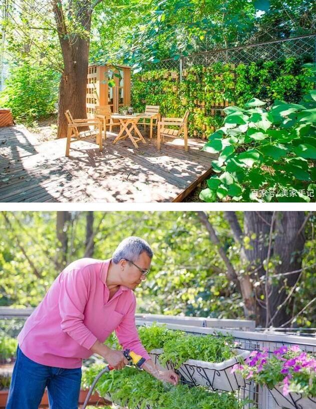 这个是院子效果,防腐木板搭建的露台上,摆放了各种蔬菜培育器,种上一些瓜果蔬菜,不仅实用,还美得像一个花园。
