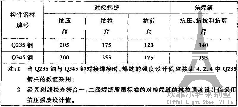 表4.2.4 焊缝的强度设计值(N/mm2)