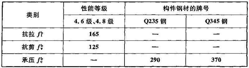 表4.2.5 C级普通螺栓连接的强度设计值(N/mm2)