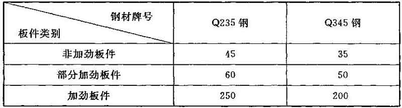 1 构件中受压板件的最大宽厚比应符合表4.3.2的规定。