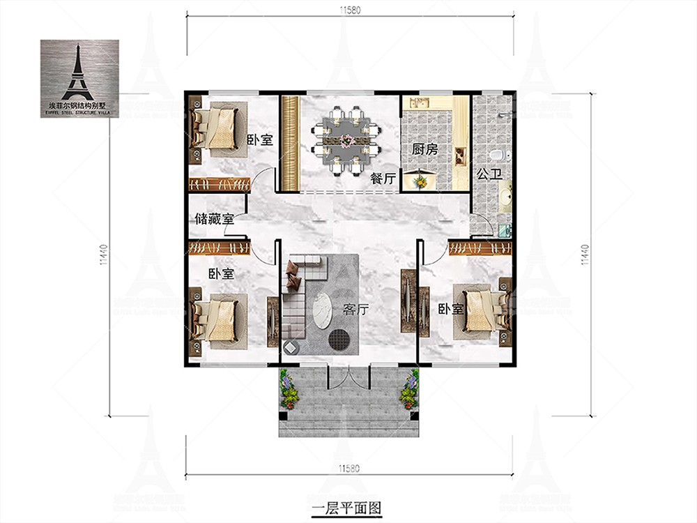 唐山遵化后府胡宅:总面积135.01平米 11.8X9.81