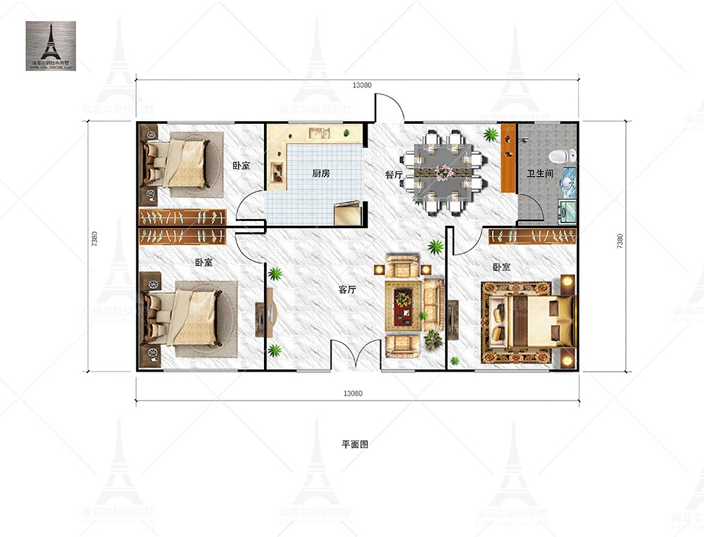 唐山迁西三屯营李宅:总面积110.82平米 13X7.3