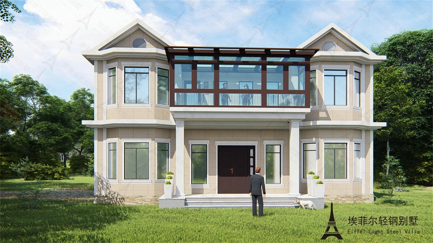 欧式二层结构轻钢别墅,轻钢别墅设计建造