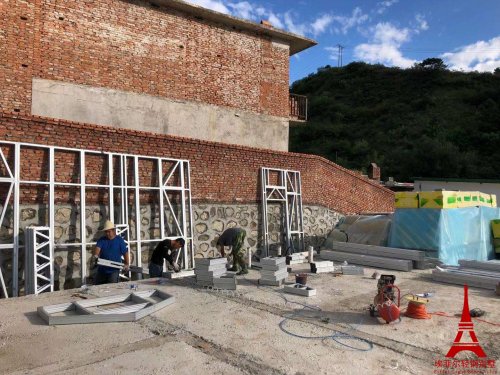 轻钢别墅栾城项目进入轻钢龙骨组装阶段